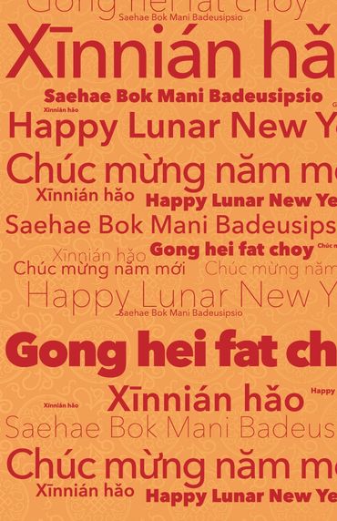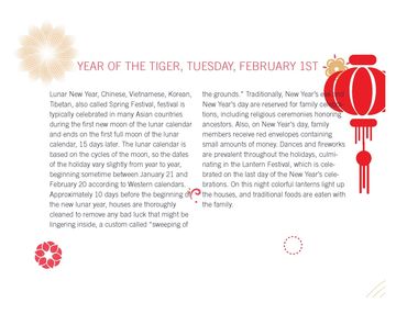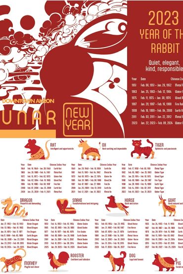 Lunar New Year in Akron is celebrated by the Downtown Business Association with accompanying flyers and postcards distributed by local businesses.