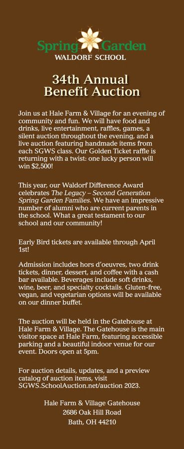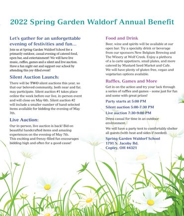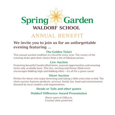 Spring Garden Waldorf School is located in Copley, Ohio. Each year they have an annual benefit fundraiser and since 2019, I have been designing the invitation for the event.